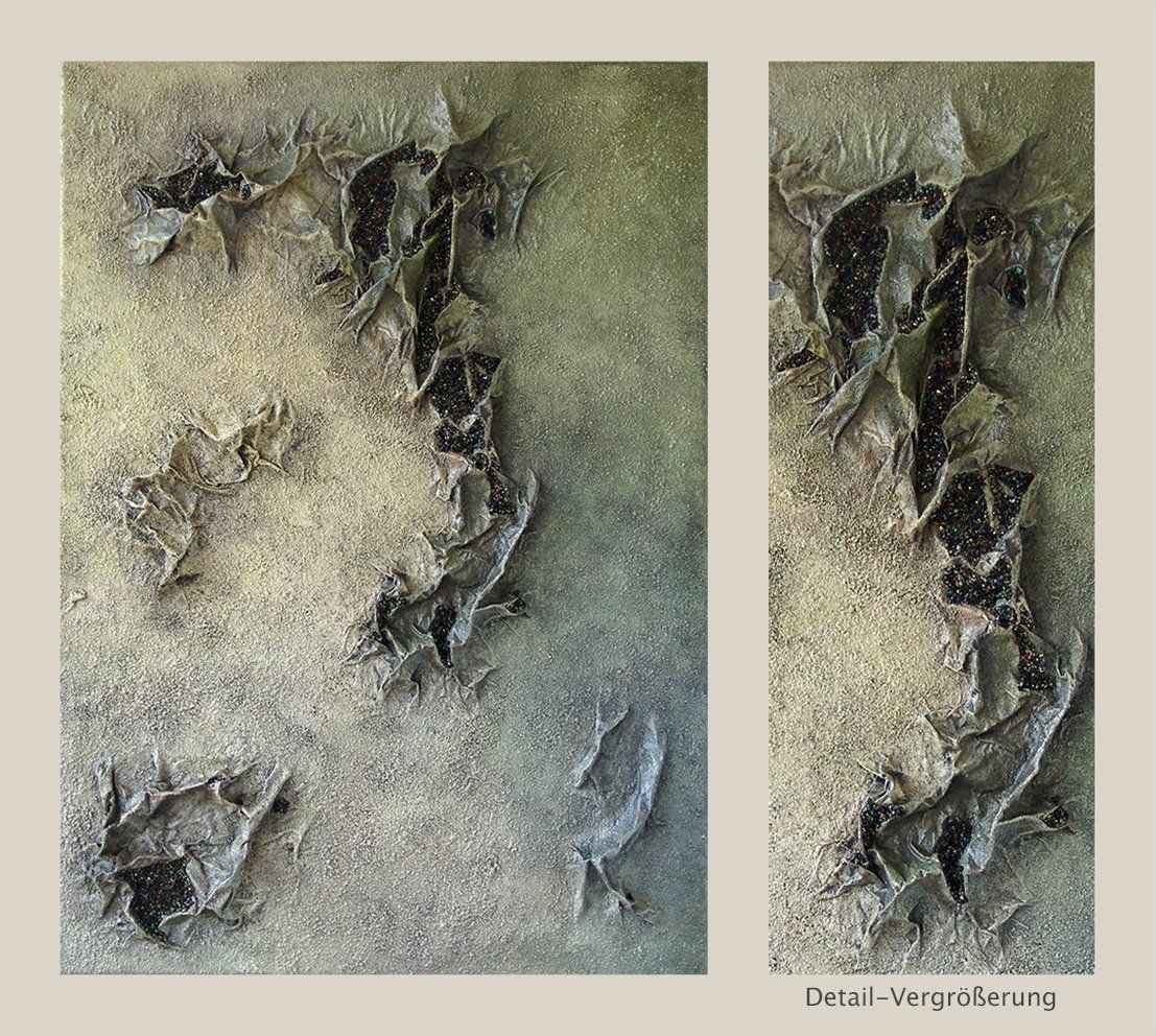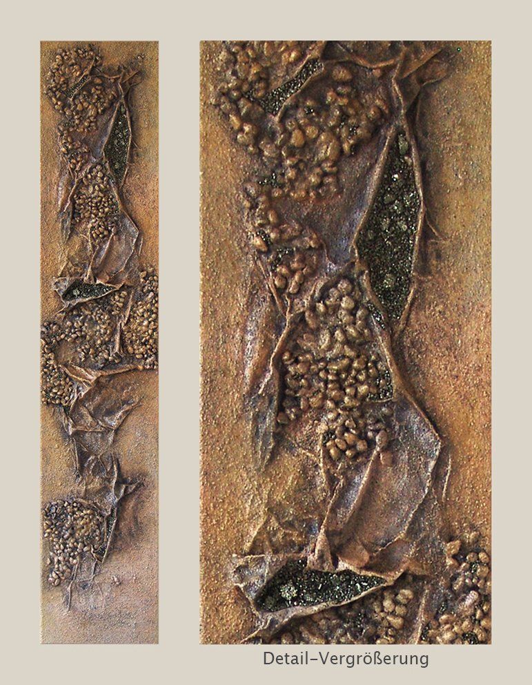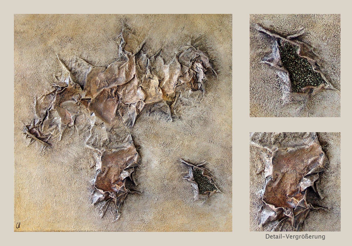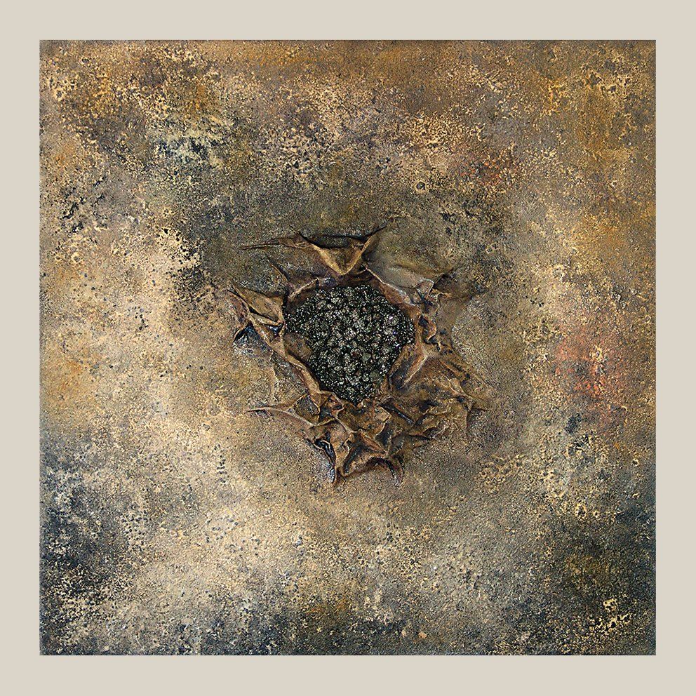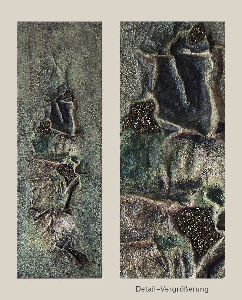 Collage mit Applikationen aus Pyrit.