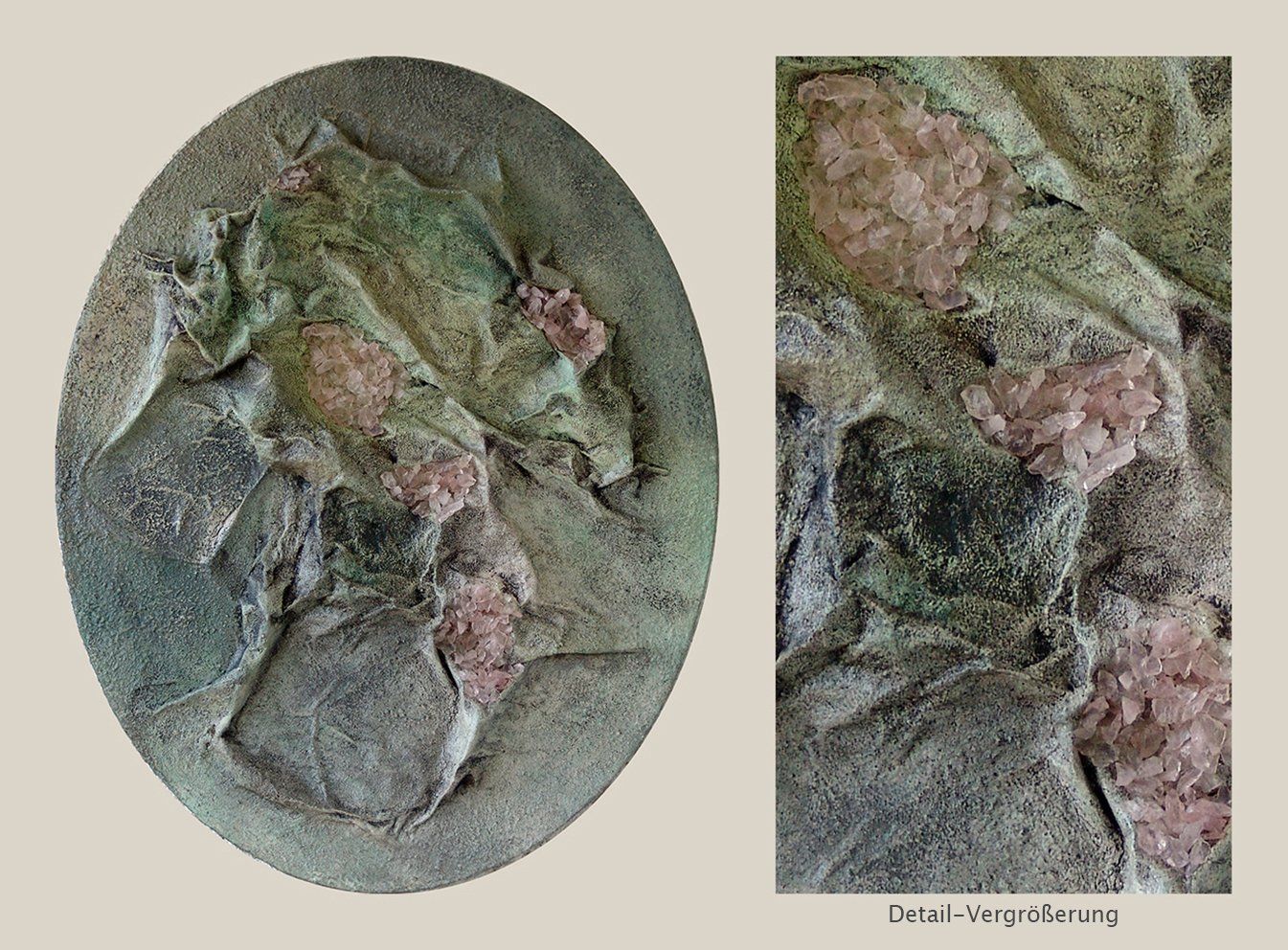 Collage mit Applikationen aus Rosenquarz.